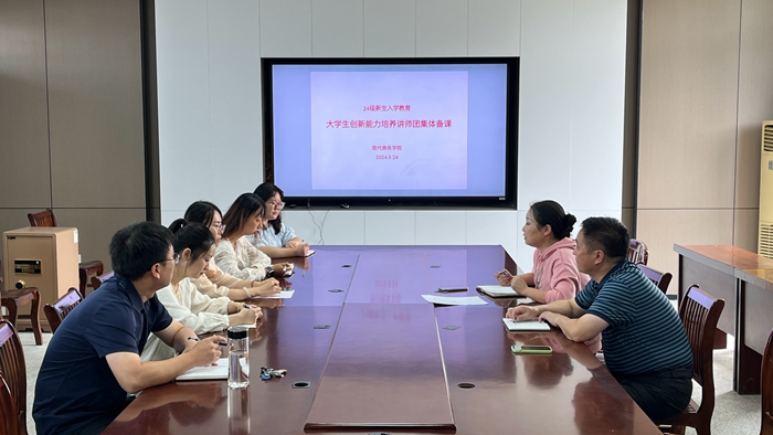 为指导和帮助2024级新生尽快了解、认识、融入现代商务学院的各项大赛备赛工作,以积极、乐观、进取的精神状态开启大学新生活,现代商务学院选拔参赛经验丰富、成果优秀的老师组建大学生创新能力培养讲师团,将为24级新生开展形式多样的入学教育,助力新生“赛”路起航。9月24日中午,现代商务学院副院长余瑰在3号教学楼510教室,召集讲师团全体教师开展第一次集体备课。
