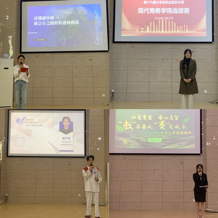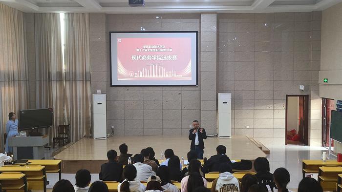 10月23日下午,现代商务学院在3号教学楼316阶梯教室成功举办学校第十六届大学生职业规划大赛学院选拔赛,经过评委老师前期对所有报名参赛的选手提交的参赛材料的评审,最终有八名选手入围现场展示,各班辅导员老师、报名参赛的选手和来自各班的学生代表近两百人现场观摩了比赛。本次大赛旨在引导广大学生树立正确的职业观、明确就业目标、科学规划未来、提升职业素养和竞争力。