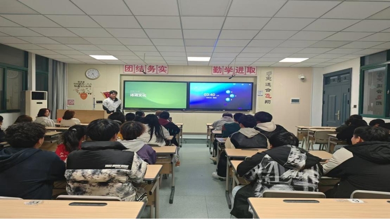 在中华文明悠久的历史长河中,诗词不仅是历史的见证,也是文化的宝贵载体。为了传承这一文化遗产,并激发学生对古典诗词的热爱,24级电子商务二班于12月2日晚在401教室成功举办了以“探寻诗词之美,共赏文化之韵”为主题的班级活动。活动通过形式多样的内容,引导学生深入挖掘诗词的奥秘,感受其独特的艺术魅力。