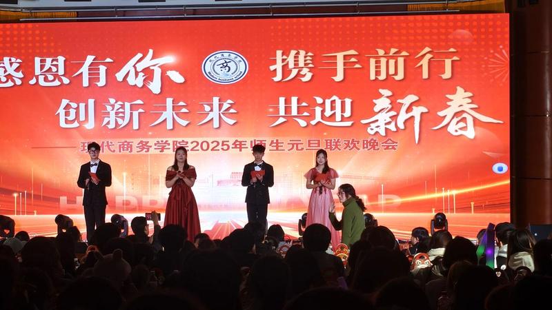 12月19日晚,现代商务学院2025年师生元旦联欢晚会在校图文报告厅盛大举行。出席本次活动的有现代商务学院党总支书记、院长金启胜、党总支副书记李三平、副院长余瑰以及学院辅导员和老师。在这个喜庆的日子,师生齐聚一堂,共同告别充满收获的一年,迎接新年的到来。