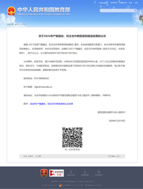 威尼斯官网产教融合校企合作案例入选教育部2024年典型...