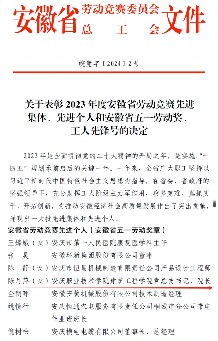 8040威尼斯陈月萍教授获“安徽省五一劳动...