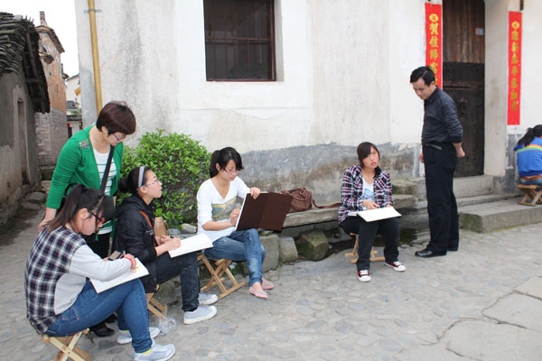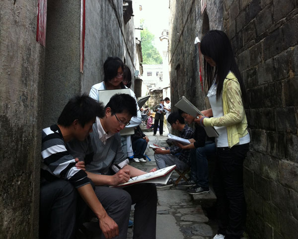 4月5日至4月12日,建工系2011级室内设计专业一百余名学生,在皖南“中国画里乡村”之美称的宏村写生基地,开展为期一周的写生实习活动。