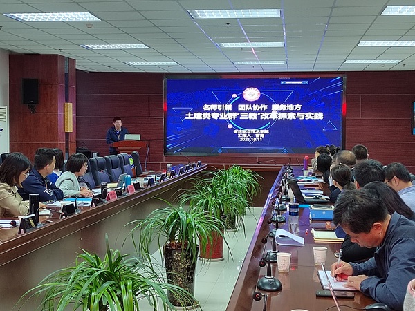 我院副院长曹青代表团队以“名师引领,团队协作,服务地方,土建类专业群“三教”改革探索与实践”为主题,分别从建设思路、教师队伍改革、课程与资源建设、教法改革与成效四个方面向与会人员作了报告交流。
