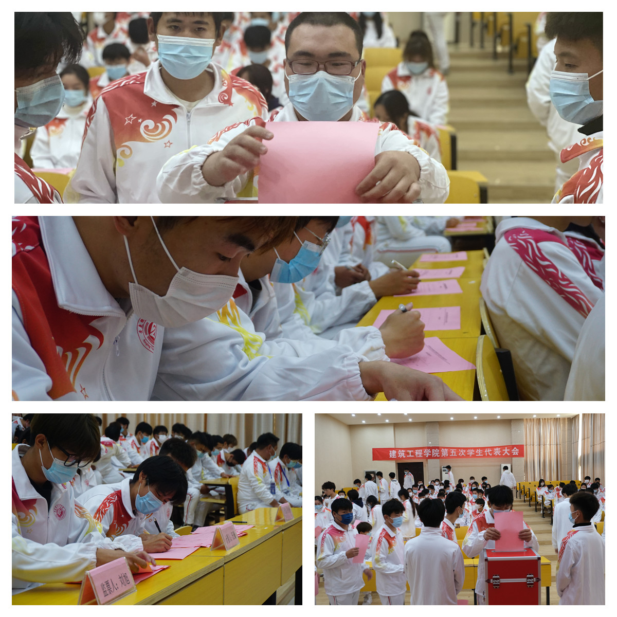 开幕式结束后,各代表团分别举行了分组会议,讨论并审议了《建筑工程学院第五届学生委员会委员选举办法(草案)》、《建筑工程学院第19届学生会主席团成员选举办法(草案)》,讨论并酝酿出第五届建筑工程学院学生委员会委员候选人预备人选建议名单(草案)。 在学生代表大会第五次全体会议上确定了大会的监票人、计票人名单,并通过了《建筑工程学院第五届学生委员会委员选举办法》、《建筑工程学院第19届学生会主席团成员选举办法》,经过紧张的投票选举环节产生了新一届学生委员会委员及主席团成员。