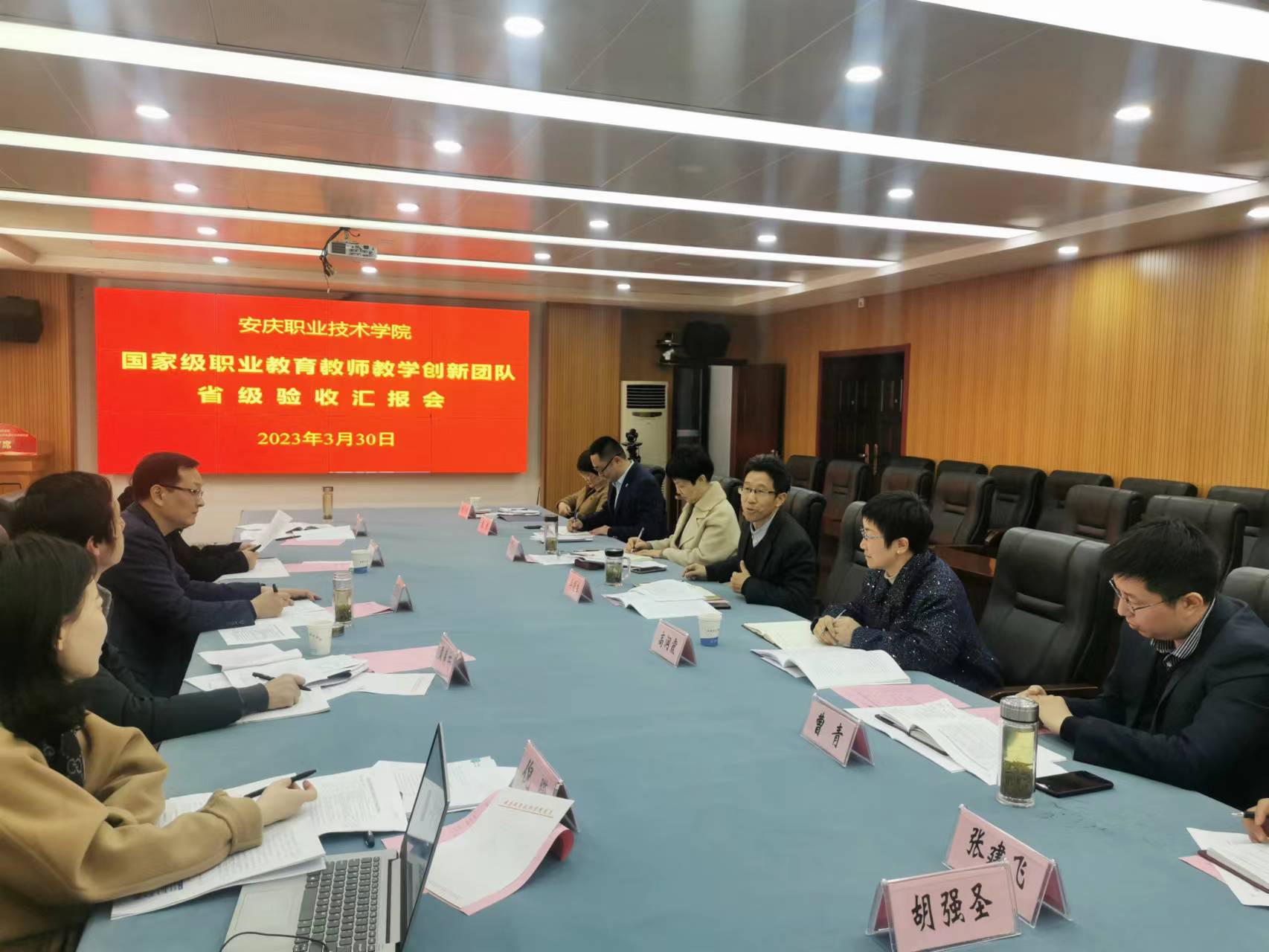 3月30日,受安徽省教育厅委托,以安徽工商职业学院副院长陈章奇为组长的验收评价专家组莅临威尼斯官网,实地考核威尼斯官网国家级职业教育教师教学创新团队建设情况。校党委副书记、校长毕明生、校党委委员高润霞、吴何珍,教务处负责同志、团队负责人及团队成员参加本次实地考核。