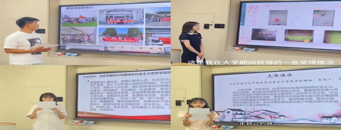 同学们以铿锵有力的气势、充沛饱满的感情、自信大方的形象朗诵了《习近平著作选读》、《习近平新时代中国特色社会主义思想专题摘编》经典篇章。大家各自推荐了最喜爱的一本书籍,诵读精彩片段,分享读书感想,交流学习心得。在活动中感悟中国共产党的光辉历程、在学习中深刻领会习近平新时代中国特色社会主义思想的丰富内涵和精神实质,在聆听中坚定“听党话、感党恩、跟党走”的信心和决心。活动还采取师生诵读经典形式,内容包括唐诗宋词、毛主席诗词等,融古今于一体,家国情怀与文化气息一堂,活动现场充满着浓厚的阅读氛围。建工学子们用高亢的声音和铿锵有力的语言,展现了新时代大学生的崇高理想和追求。