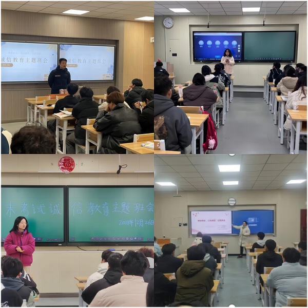 期末将至,为树立良好的考风考纪,进一步规范学校考试工作,建筑工程学院开展诚信教育主题班会活动。本次主题教育班会以“诚信考试”为主要内容,让同学们意识到要诚信考试,杜绝作弊,也需让同学们意识到诚信考试以后更深远的意义--告诫同学们在以后的生活学习中也需要树立诚信的观念,培养良好的道德品质。