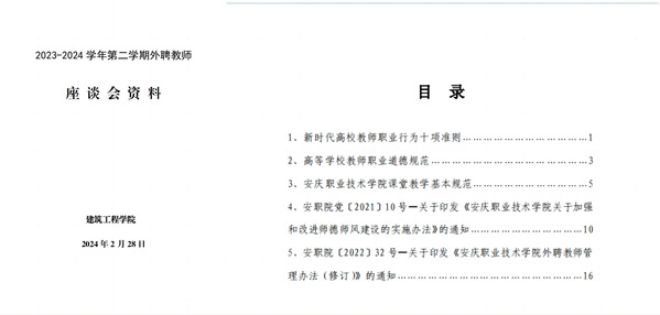 为进一步加强外聘教师的管理,2月28日下午,建筑工程学院在1号教学楼514会议室召开了新学期外聘教师座谈会,该院本学期17位外聘教师、院长陈月萍、专业建设负责人参加座谈,会议由教学管理科科长张建飞主持。