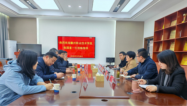 3月28日,滁州职业技术学院建筑工程学院副院长张国富一行5人来我院考察交流,院党总支书记、院长陈月萍教授热情接待了考察组一行,副院长张赛、专业建设负责人陪同考察。