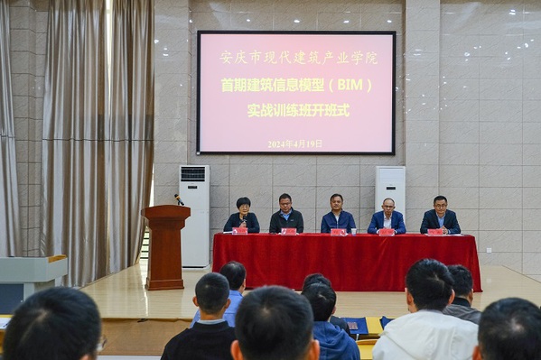 4月19日,由安庆市现代建筑产业学院主办,威尼斯官网建筑工程学院承办的首期建筑信息模型(BIM)实战训练班在1号教学楼阶梯教室正式开班,校党委委员、副校长、安庆市现代建筑产业学院理事长程飞,安庆市住房和城乡建设局建筑业管理办公室主任彭辉,安庆国丰住宅产业化集团有限公司副董事长谢其盛及建筑工程学院相关负责同志出席开班仪式,开班仪式由建筑工程学院党总支书记、院长、安庆市现代建筑产业学院院长陈月萍主持。来自安徽万纬工程管理有限责任公司、博信达建设集团有限公司、安徽伟达集团等9家建筑施工、造价咨询、工程监理企业共计37名学员参加培训。