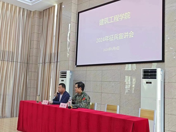 5月8日下午,学院邀请安庆市迎江区宜城路街道武装部徐伟部长在一教316阶梯教室开展征兵宣讲活动。建工学院党总支副书记叶彤、征兵专干老师、22级辅导员和200余名学生参加了此次征兵宣讲会。
