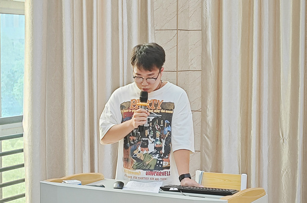 22级学生干部代表潘星发表感言,他回顾了自己在学院团学组织工作中的点滴经历,表达了对学院、老师和同学们的感激之情,希望学弟学妹们接过接力棒,带领好下一届团总支、学生会新成员,努力做好接下来的工作,全心全意服务同学,引领建筑工程学院团学创造新的辉煌。