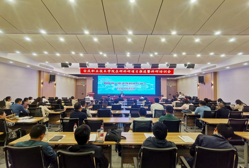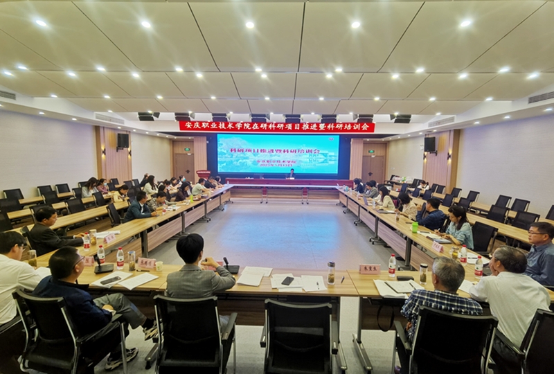 本次活动分项目推进和培训讲座两个环节。项目推进分哲学社科组、自然科学组两组进行,由校内外专家组成的点评指导组认真听取了各在研项目负责人关于项目实施进展情况汇报,对每一个项目都逐个进行点评并提出书面指导意见。培训讲座阶段,安徽机电职业技术学院科研处处长张涛教授受邀作题为“高职院校教师科研项目申报与科技成果转化”的专题讲座,分享了安徽机电职业技术学院在国家“双高”建设中推进科研创新工作的经验做法。