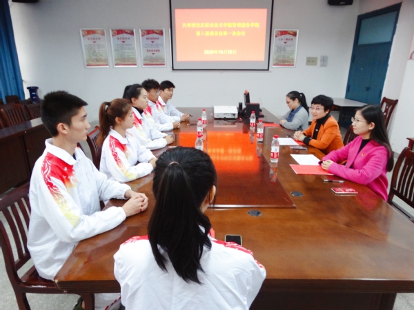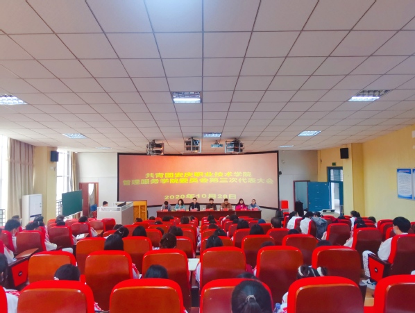 10月28日下午,共青团8040威尼斯管理服务学院第三次团员代表大会在三号教学楼216室如期隆重召开,该院党政领导班子、各科室负责人出席会议,来自各团支部的100名全体团员代表参加了本次大会。