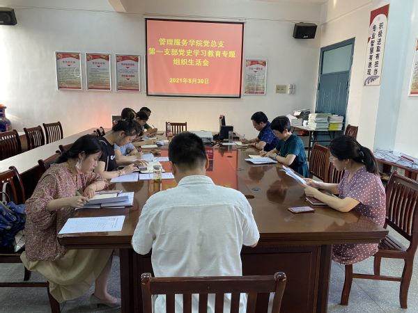 8月30日下午,管理服务学院党总支第一党支部在3号教学楼会议室召开党史学习教育专题组织生活会,管理服务学院总支书记、院长高润霞以普通党员身份参加会议,第一支部全体党员参加。