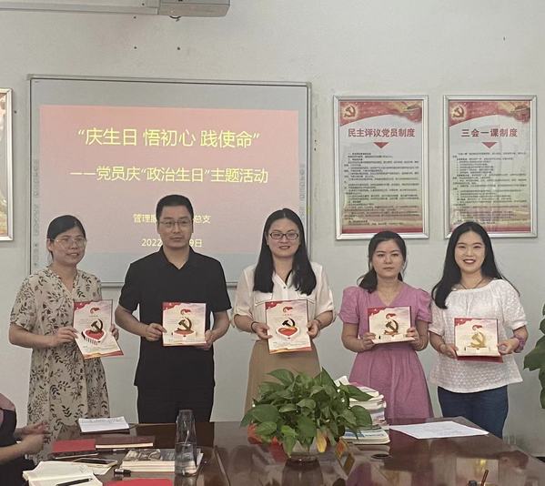 为进一步激发党员的政治热情,增强党员的责任感和使命感,让党员同志感受到组织的温暖,6月29日下午,总支开展了党员庆“政治生日”主题活动,为6月份过生日的5位党员举行了集体“庆生”活动。