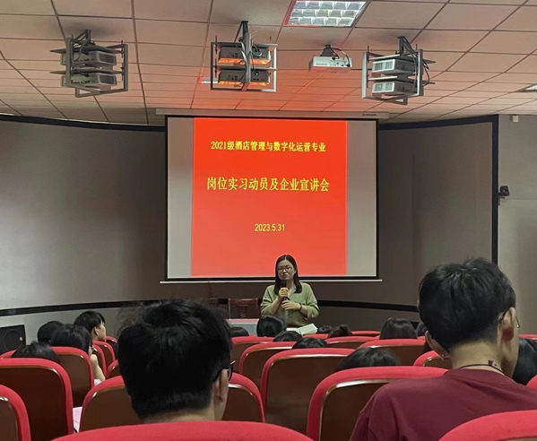 为引导学生做好实习前的各项准备工作,扎实推进2021级学生岗位实习工作顺利、有序开展。管理服务学院酒店管理与数字化运营与旅游管理专业分别于5月31日和6月1日下午分专业召开了实习动员会以及企业宣讲会,院长陈颖、副院长李敏、专业建设负责人、辅导员、团队专业教师及2021级170余名实习学生参加会议。