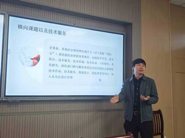为更好的提升教师知识贡献能力和社会服务水平,切实推进产学研合作,3月20日下午,管理服务学院邀请校科技处副处长王伟在3号教学楼314会议室为全体教师开展横向课题能力提升培训。