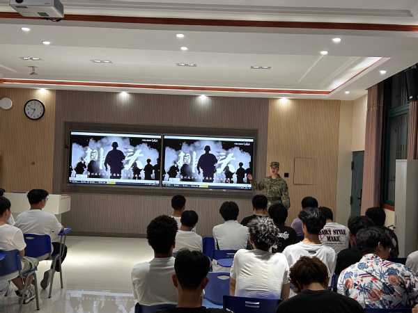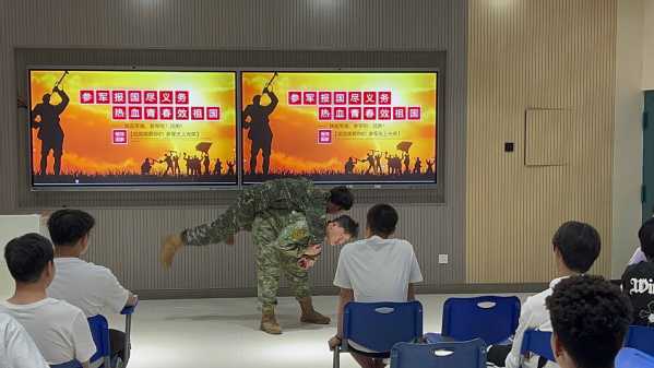 为强化大学生国防观念,加大征兵宣传力度,普及征兵政策,激发参军报国热情,营造爱国强军的校园文化氛围,管理服务学院于2024年6月13日晚在三号教学楼206教室举行了大学生征兵宣讲活动。本次活动由院学生工作负责同志主持,2022级优秀退役士兵代表进行宣讲,院团总支书记及2022、2023级学生代表40余人参加活动。