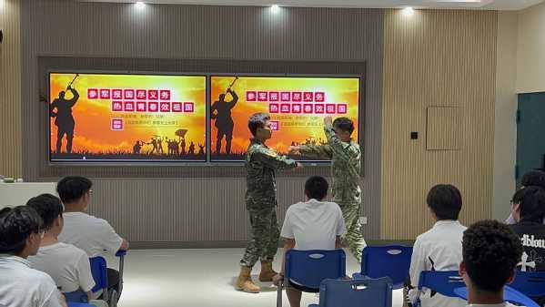 2022级酒店管理与数字化运营1班的马甲俊同学是院团总支学生副书记,退役前是名武装侦察兵。他围绕大学生入伍各类优待政策、报名流程、体检注意事项、服务保障、发展机遇等进行了详细讲解,对同学们关心的相关问题给予耐心细致地解答。让青年们清楚地认识到投身军营不仅是一种荣誉,更是一条能够实现自我价值、塑造优秀品格的重要途径。