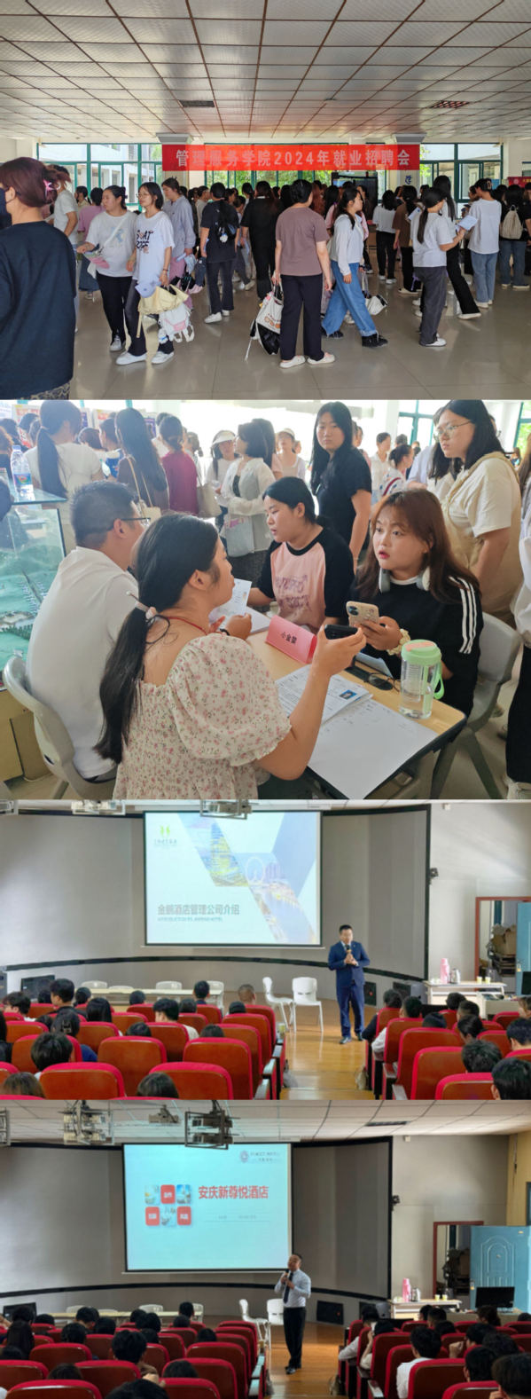 为拓宽就业渠道,管理服务学院积极开展访企拓岗行动。学院结合学科专业特色,与企业合作开展就业育人项目,推动供需精准对接,不断深化校企合作。从学院班子成员到专业建设负责人、从辅导员到专任教师,全员参与学生就业与岗位拓展工作。2024年上半年,学院领导携相关专业负责人、辅导员及专任教师等先后走访企业十余家。4月份,院党总支书记、院长陈颖携学生管理负责同志、智慧健康养老服务与管理等专业建设负责人一行5人,前往合肥中科深谷科技发展有限公司、安徽城市管理职业学院、泰康之家徽园三家单位开展考察调研,聚焦智慧健康养老专业人才培养、学生实习就业等方面开展合作交流。5月份院学生工作负责同志带队分别赴黄山市黟县徽黄旅游集团和安庆市滨江文旅产业发展有限公司开展访企拓岗活动;院教学工作负责同志带队赴福建艾孚科技集团有限公司、泉州滨海幼儿园、厦门红苹果幼儿园、树儿邦托管集团等企业,重点了解幼儿园所的发展情况、员工职业发展路径、对人才的需求状况等。本年度的访企拓岗工作通过“走出去”与“请进来”相结合的方式,邀请30余家企业进校洽谈宣讲。访企拓岗搭建了校企合作交流平台,经过努力,学院先后与安庆丰大国际酒店、泰康之家徽园等多家行业头部企业签订合作协议,开拓实习就业岗位近400个。