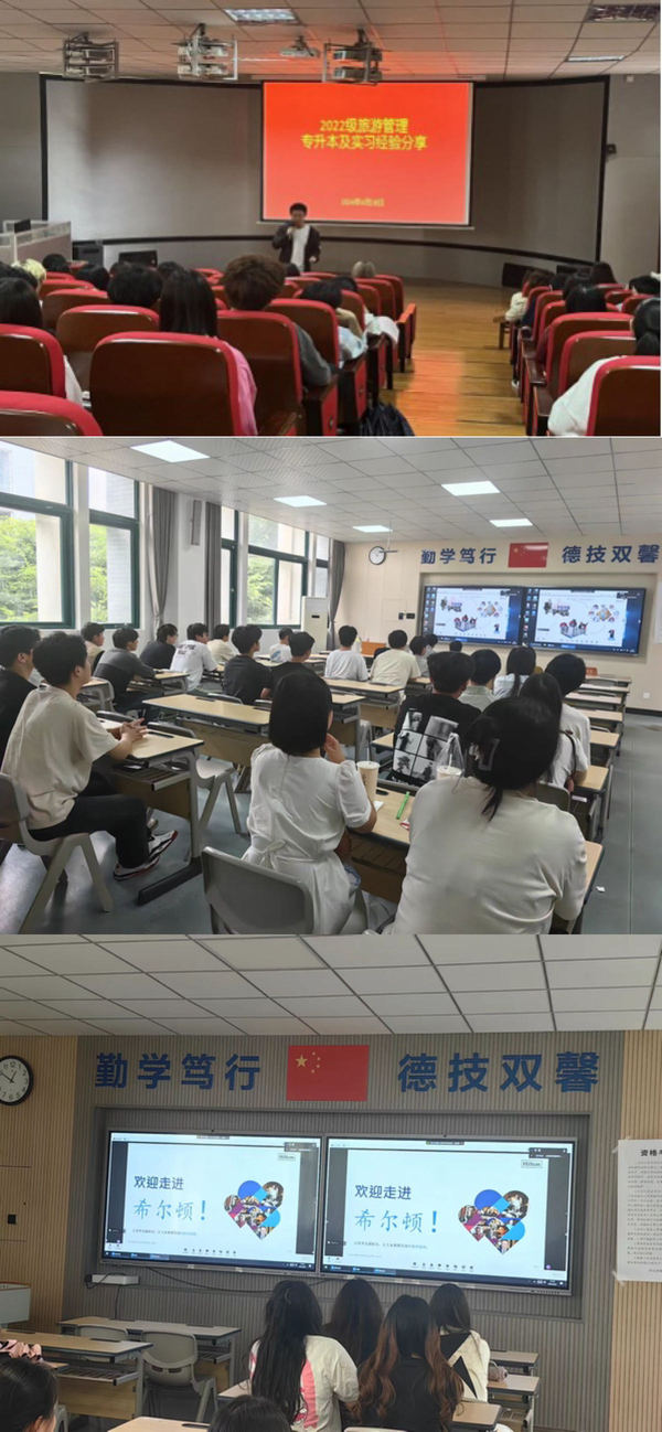 为积极推进毕业生就业工作,毕业班辅导员动态摸排毕业生求职意愿,结合学生意向,制定帮扶方案,分类指导。一方面,对专升本、就业的同学予以分类指导,如针对有专升本意向的学生开展“专升本”经验交流会;针对有求职意向的学生,邀请上海祥源希尔顿HR、安庆思佰特总经理开展了专场讲座,从行业前沿动态、实际工作情况、求职面试技巧等方面帮助学生提升求职能力。另一方面,学院积极发动校友资源,邀请往届优秀毕业生代表进校宣讲,如2016届酒店管理专业毕业生李正--宁波钱湖国宾馆人事经理、2023届旅游管理专业毕业生韩信哲--温州畅旅国际旅游有限公司合伙人等优秀校友,同2022级学生分享成长经历、传授求职及职场工作经验,用朋辈的榜样作用引导学生转变就业观念。第三,通过学院网站、学工微信群、班级群等信息发布平台及时向毕业生发布各类就业信息,力争实现“就业信息全覆盖”。第四,学院将部分因学业困难、家庭困难或性格等原因导致的就业困难的学生,作为就业工作的重点关注对象,将他们与“党员三联系”制度相结合,每名党员教师都负责联系一到两名困难学生,实行“一生一策”动态管理,通过推送就业信息、求职指导等方式给予精准帮扶,提升就业工作的温度。