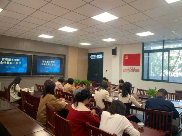 10月23日下午,管理服务学院召开全体党员大会暨教职工会议,传达学习习近平总书记考察安徽重要讲话精神,落实校党委会(扩大)会议精神,部署安排学院学习贯彻落实工作。会议由院党总支书记、院长陈颖主持。