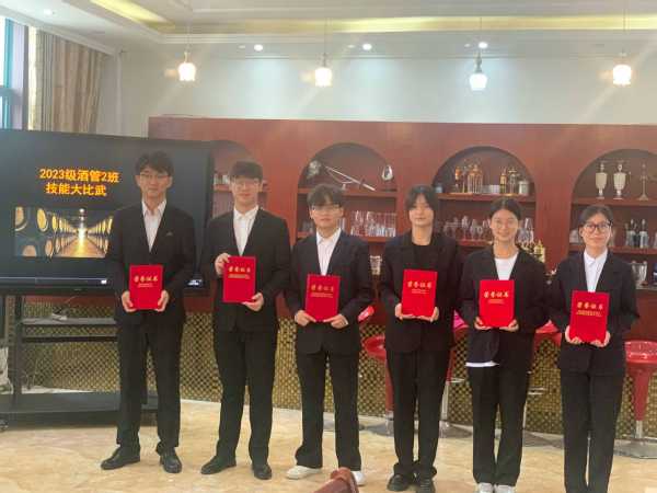 调酒展示区,激情四溢。选手们如同魔术师,调酒器具在他们手中或摇动、或搅合,各种酒液瞬间变成了色彩斑斓、口感丰富的鸡尾酒。每一款鸡尾酒都仿佛是一件艺术品,让人赏心悦目。李婉晴、王静、李紫怡、赵云瑞等同学分别获得一等奖,二等奖和三等奖。