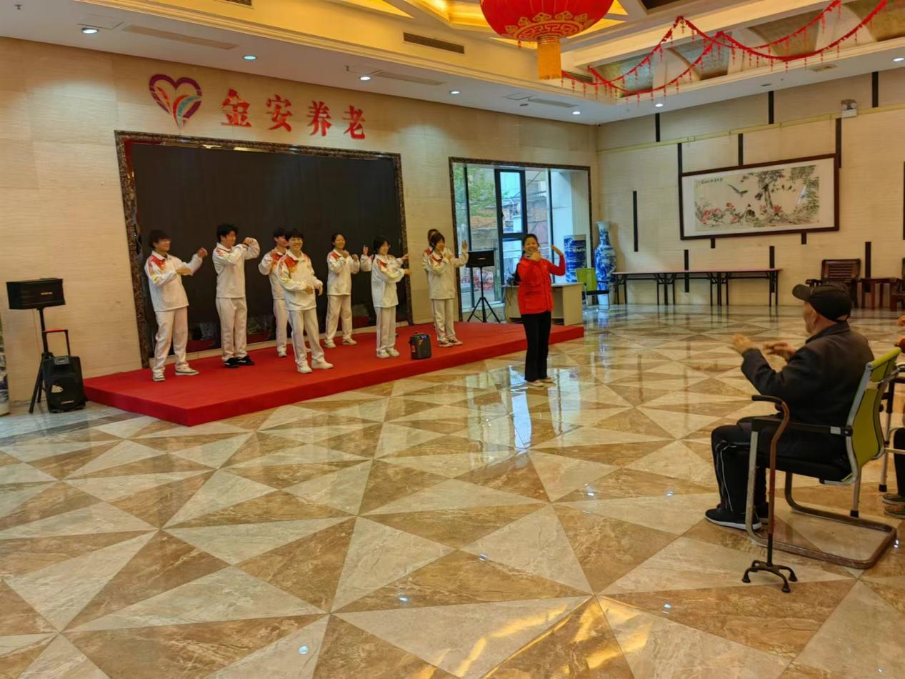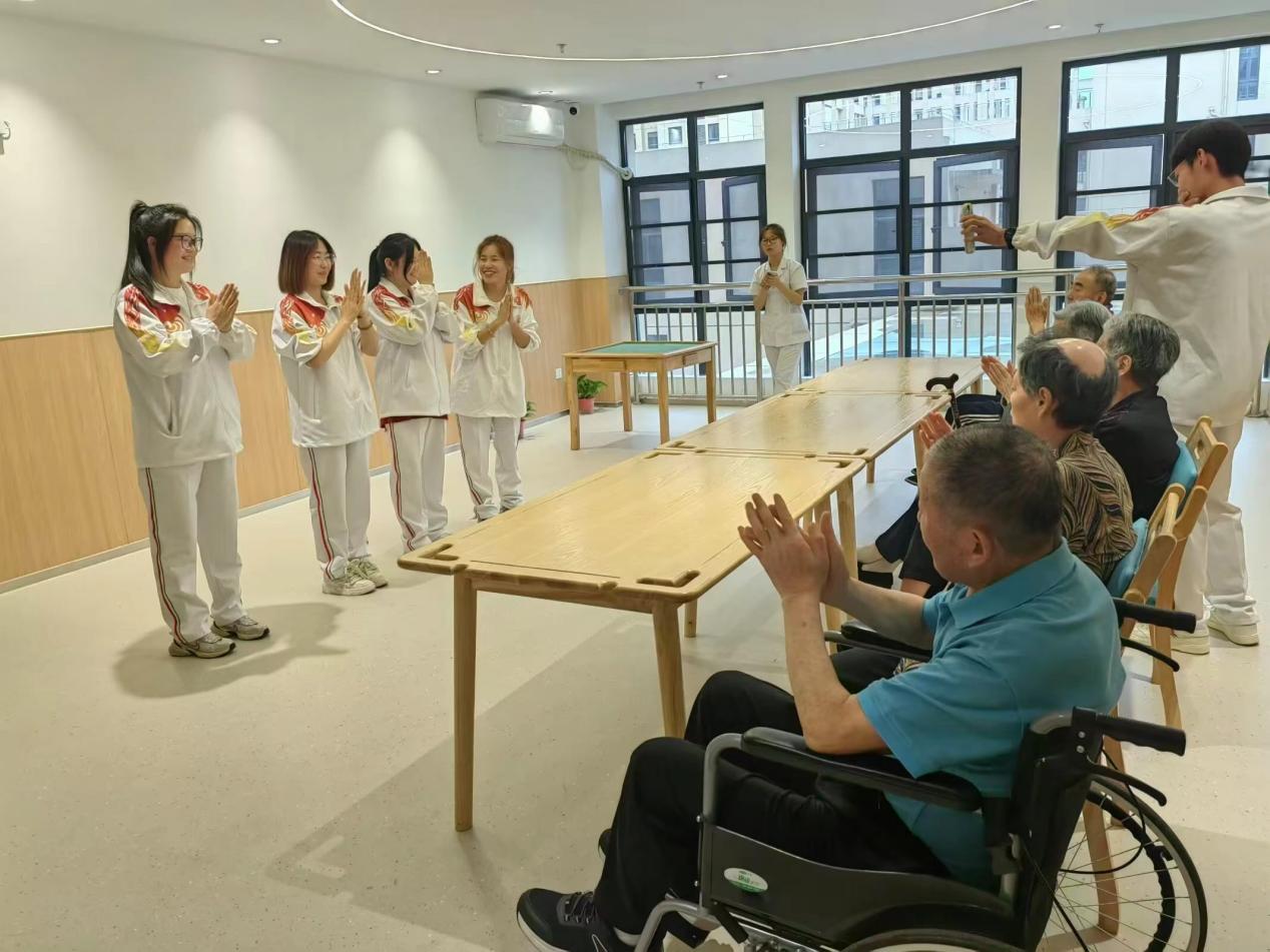 每周的企业实践课上,同学们精心组织多种文化娱乐活动,例如音乐欣赏、手工制作、趣味游戏等,为老人营造欢乐祥和的养老氛围。