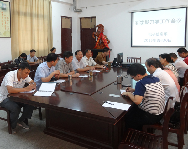 8月30日上午,电子信息系系在2号教学楼110会议室召开2015-2016学年度第一学期开学工作会议,全面部署我系本学期工作。会议由方莉主任主持,全体教职工参加会议。