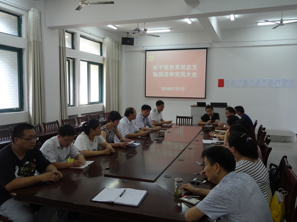 7月7日下午4:00,电子信息系召开党总支换届选举会议。电子信息系党总支副书记方莉主持会议。系全体党员参加会议。