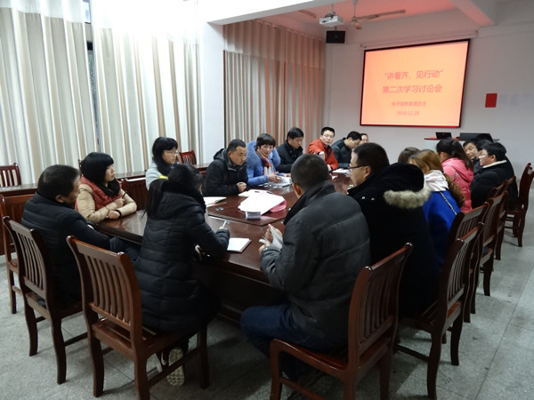 为牢固树立“四个意识”特别是核心意识和看齐意识, 12月28日下午,电子信息系党总支召开“讲看齐、见行动”第二次学习讨论会,会议由李跃花书记主持。