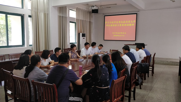5月17日下午,电子系在2号教学楼会议室,组织全体党员同志学习习近平总书记在北京大学师生座谈会上的重要讲话暨纪念马克思诞辰200周年大会上重要讲话精神。