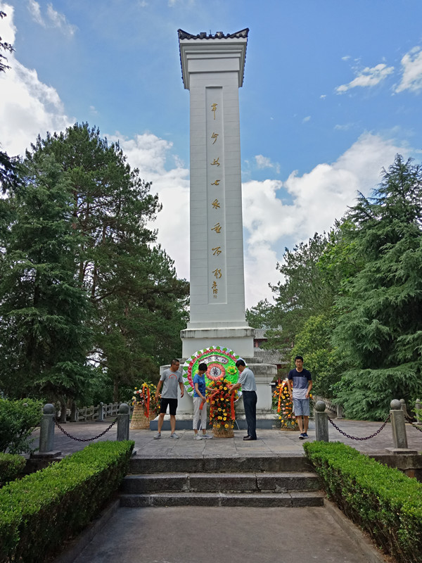 第一站全体党员来到大别山烈士陵园,首先向革命烈士三鞠躬,以寄托哀思;其次系总支负责同志为革命烈士敬献了花篮;最后在烈士陵园墓碑前,重温了入党誓词。