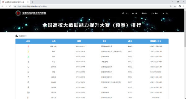 本次比赛采用开放式平台,通过网络在线答题的方式进行,预赛成绩超过120分者可获得工业和信息化部“大数据分析员”证书申请资格,竞赛过程中,参赛选手可以即时查看自己的答题得分情况,使得比赛现场气氛十分热烈。