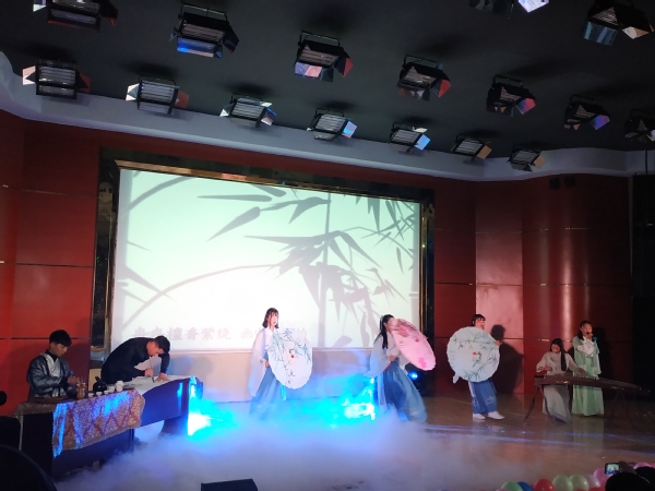 晚会中,同学们风采尽展,老师们也毫不逊色,杜青和沈璐两位老师倾情合唱一曲《光明》,给全体带来了新年的问候,尽展工作之外的风采,将晚会推向高潮。此外,晚会还穿插颁奖环节,由老师颁发“国家励志奖学金”“优秀三好学生”、“优秀学生干部”等,台上台下互动频繁,晚会气氛其乐融融。最后,晚会在全体老师和演员合唱歌曲《相亲相爱》的温馨气氛中圆满落幕。