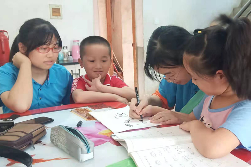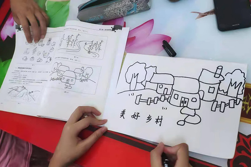 20日,志愿队一行整装出发,沿途对村部路面进行了清理。随后同学们深入农户家中,帮助他们做一些力所能及的事,亲身体验农村劳动生活的辛苦。数媒班的两位同学还对村里留守儿童进行了简笔画基础知识讲解和暑期文化课的辅导。同学们积极认真的态度赢得了村民的称赞和认可。