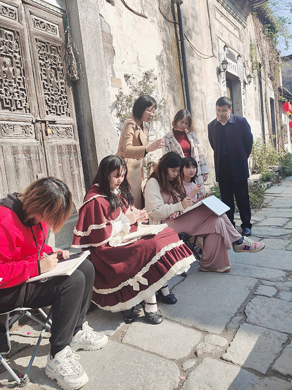 10月23日,师生们开始写生教学活动。本次写生任务一方面是建筑风景速写,以提高学生的构图、线条、造型塑造等方面的技能;另一方面是让学生了解徽州地区优秀的自然与人文文化,做好图案纹样、色彩搭配等艺术设计、摄影素材的收集,为今后的创作奠定基础。