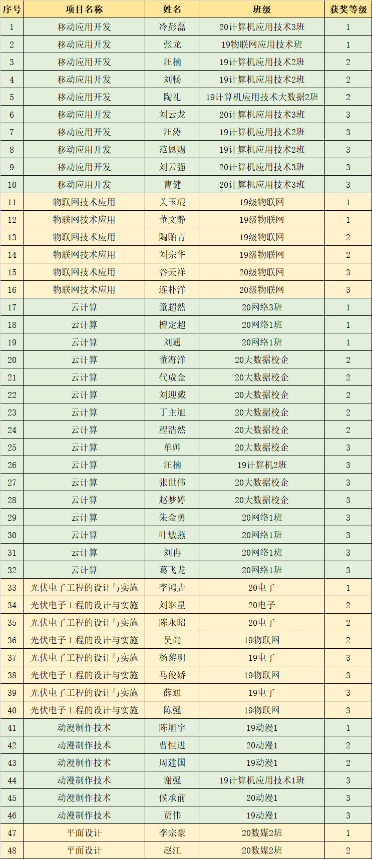 信息技术学院2021年职业技能大赛暨省赛选拔赛获奖名单