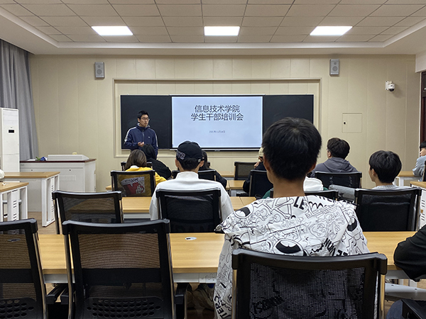 为提高团学干部的政治素养和工作能力,进一步发挥学生干部的模范带头作用,促进团学组织建设和发展,信息技术学院于11月18日在2#206教室举行了学生干部培训会,会议由院团总支书记查翔主讲。