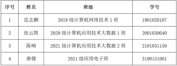 附件:信息技术学院关于对范志鹏等4名同学进行退学处理名单