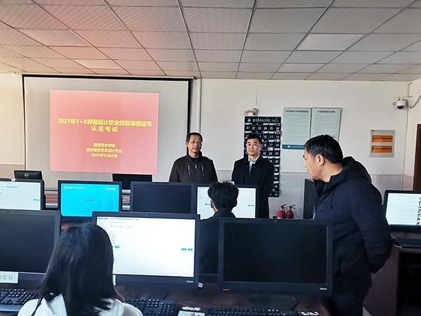 12月4日,信息技术学院数字媒体艺术设计专业首次举办1+X界面设计职业技能等级证书认证考试,2019级、2020级数字媒体艺术设计专业共计60名学生参加考试。考试期间,实验实训中心主任李进恩、信息技术学院院长疏国会等深入现场巡查考务工作。