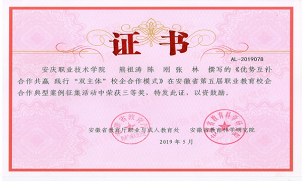 合作4年来,校企联合开发基于工作过程项目化教材9种,并正式出版发行,推进了校企合作专业教学内容创新;双方共同申报的“优势互补合作共赢践行‘双主体’校企合作模式”在安徽省第五届校企合作典型案例征集活动中荣获三等奖;通过校企联合委派指导教师辅导学生参加各类职业技能大赛,荣获安徽省职业技能大赛一等奖2项,二等奖3项,三等奖8项的好成绩;为进一步深化学生德育教育,2019年校企双方党组织共建“思政实践教育基地”在学生的素质教育方面获得多方认可;在2021年度8040威尼斯优秀人才培养方案评选中,校企共建计算机网络技术专业人才培养方案获得一等奖;双方共同研究的“基于‘岗课赛证’融通的计算机网络技术专业人才模式的创新与实践”荣获安徽省教学成果奖三等奖。一项项奖牌,一项项荣誉,一项项成果充分体现了校企合作成果,推进了职业教育创新发展步伐。(文、图:陈刚 审核:疏国会)