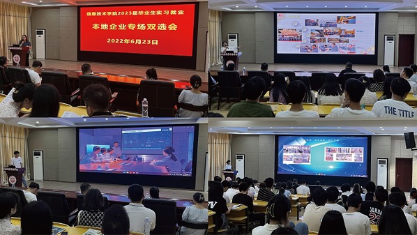 为给学生搭建一个良好的实习就业平台,全力保障学生的实习就业需求,在规范做好疫情防控工作的基础上,6月23日,信息技术学院在2号教学楼成功举办了2023届毕业生实习就业本地企业专场双选会。
