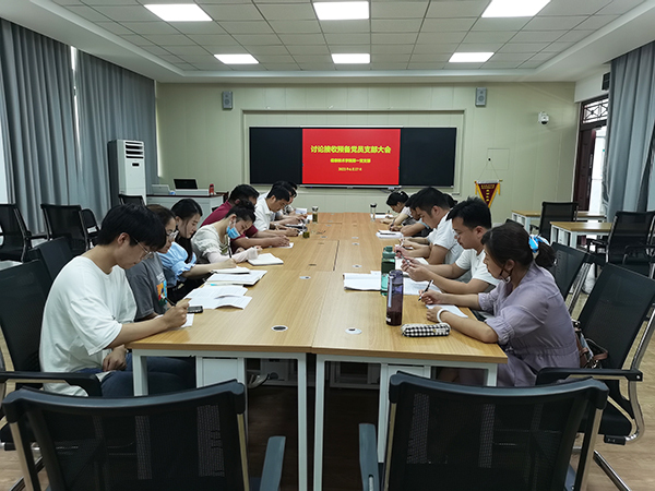 会议开始,支部书记对大会流程作了简要介绍。张宇等九名发展对象逐一宣读入党志愿书,并就学习、思想、工作、生活等方面情况进行了汇报,表达了加入中国共产党的强烈愿望,政治立场坚定,入党动机明确,思想态度端正。入党介绍人对发展对象在思想动态、学习、工作、实践活动等方面的表现进行评价,并对发展对象能否入党表明意见。与会党员进行广泛而深入的讨论。拥有表决权的党员对接收预备党员采取无记名投票方式进行表决,一致同意接收9名发展对象为中共预备党员。