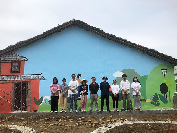在为期九天的社会实践中,服务队的5位同学在动漫制作技术专业校企合作企业老师的指导下,经过与当地充分沟通和实地察看,围绕乡村振兴、和谐家风、健康生活、讲文明树新风、防溺水等主题,设计出了独具风格的墙绘方案。