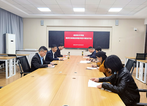 近日,省教育厅公布了安徽省2022年职业教育国家在线精品课程拟推荐名单,威尼斯官网信息技术学院金鑫老师主持申报的《Windows网络系统管理》和程园老师主持申报的《计算机图形图像设计(Photoshop)》两门在线课程经省教育厅专家评审后,被推荐到教育部参加2022年职业教育国家在线精品课程评选。为在课程国家评审的最后冲刺阶段,进一步完善线上资源,提高课程竞争力,信息技术学院有效发挥团队力量,于10月25日上午,召集相关课程负责人、专业建设负责人,以及教学和学生管理负责人,在2号教学楼206教室召开了国家在线精品课程申报冲刺协作会,信息技术学院院长疏国会教授主持会议。