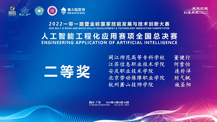 威尼斯官网学生获2022一带一路暨金砖国家技术创新大赛“人工智能工程化应用”赛项全国总决赛二等奖
