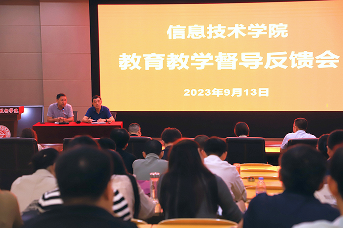 在督导反馈阶段,吴跃虎就上一学期在信息技术学院随堂听课、教学检查和专项督查的开展情况进行了集中反馈,对大多数教师的职业素养、教学水平和课堂管理给予了充分肯定,同时就督导过程中发现的问题提出了改进建议。